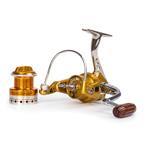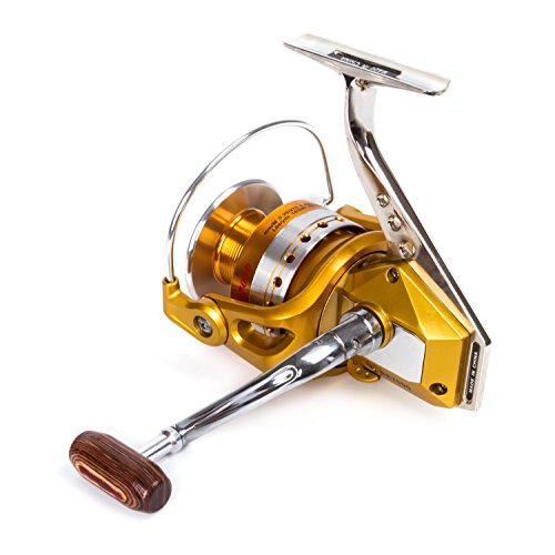 -. Binding : Misc. -. Brand : SUNVP -. Feature : Solid and durable,support for both sides,can operate steadily and make it easy to get big fish. / Highly rigid fluted disc and steel rack bar transmission structure make it work smoothly and help get fish without effort. / All interval parts have been toughened and have gear durability twice higher than the industry standard. / Light,smooth line,absolute good fishing vessels! / The foldable all-metal handle is a reversible handle and can be used for right or left handed anglers. -. IsAutographed : 0 -. IsMemorabilia : 0 -. Label : SUNVP -. Manufacturer : SUNVP -. ProductGroup : Sports -. ProductTypeName : SPORTING_GOODS -. Publisher : SUNVP -. Studio : SUNVP -. Title : SUNVP Full Metal Aluminum Saltwater Freshwater with 5.5:1 Gear Ratio High Speed Fishing Reels Spinning Gold Left/Right
