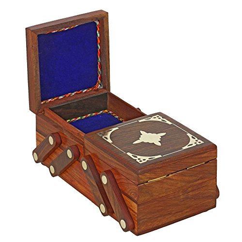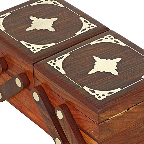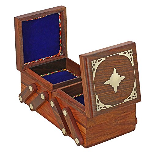 -. Binding : Home -. Brand : ShalinIndia -. Color : Brown -. EAN : 5055384771980 -. Feature : Made in sheeshum wood / Decorative brass onlay work / Size: 7 X 4.25 X 4.5 inches, / Weight : 597 grams / Handcrafted by artisans of Uttar Pradesh in north India -. Label : ShalinCraft -. Manufacturer : ShalinCraft -. Model : MN-RH_5275_JB -. MPN : MN-RH_5275_JB -. PackageQuantity : 1 -. PartNumber : MN-RH_5275_JB -. ProductGroup : Home -. ProductTypeName : HOME -. Publisher : ShalinCraft -. Size : 7 X 4.25 X 4.5 inches -. Studio : ShalinCraft -. Title : Handmade Jewelry Box Wooden 3 in 1 Brass Inlay Decor Indian Gift for Women