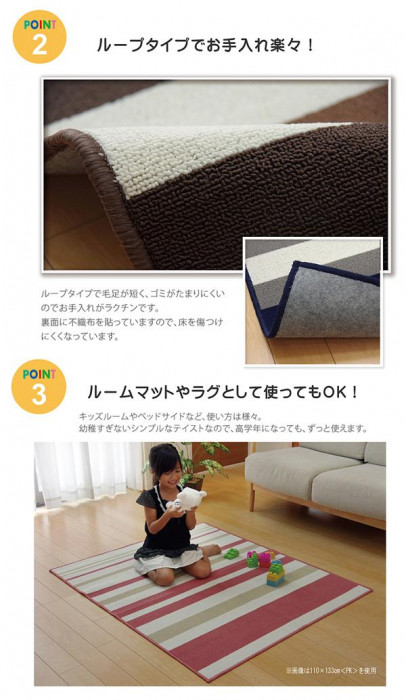 fk094igrjs学習机のデスクカーペットとしても使用可能なルームマットですシンプルなデザインなので、ベッドサイド、ソファ前などにも使えます サイズ 約133×170cm 個装サイズ:13×13×134cm 重量 個装重量:2500g 素材・材質 表地:ポリプロピレン100% 裏地:ポリエステル100%(不織布) 仕様 手洗い可 生産国 中国 誰でも使いやすいシンプルなデザイン 学習机のデスクカーペットとしても使用可能なルームマットですシンプルなデザインなので、ベッドサイド、ソファ前などにも使えます