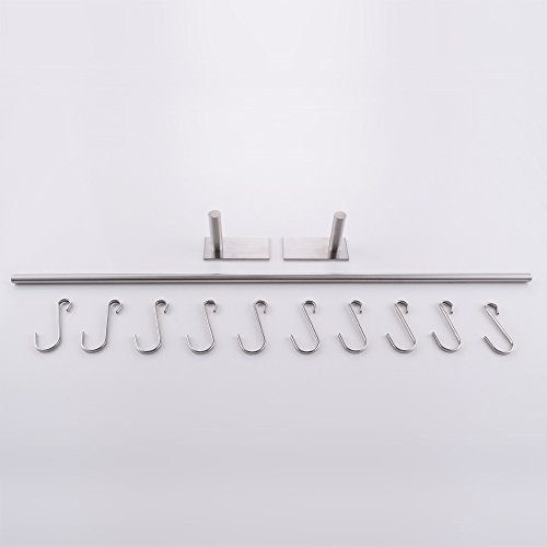 KES Self Adhesive 30-Inch Pan & Pot Rack with 10 Hooks SUS 304 Stainless Steel Sticky Kitchen Storage Organizer Bar Shelf Utensil Stick on Hanger Rustproof Wall Mount, Brushed Finish, KUR202S70-2