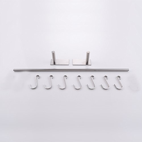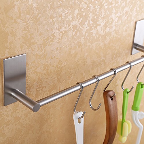 KES Self Adhesive 24-Inch Pan & Pot Rack with 7 Hooks SUS 304 Stainless Steel Sticky Kitchen Storage Organizer Bar Shelf Utensil Stick on Hanger Rustproof Wall Mount, Brushed Finish, KUR202S55-2