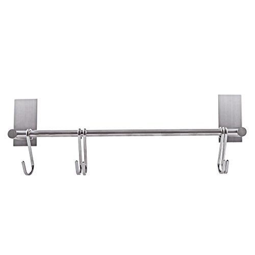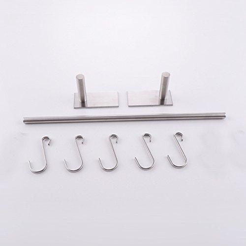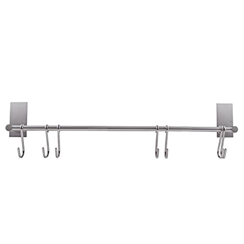 KES Self Adhesive 18-Inch Pan & Pot Rack with 5 Hooks SUS 304 Stainless Steel Sticky Kitchen Storage Organizer Bar Shelf Utensil Stick on Hanger Rustproof Wall Mount, Brushed Finish, KUR202S40-2