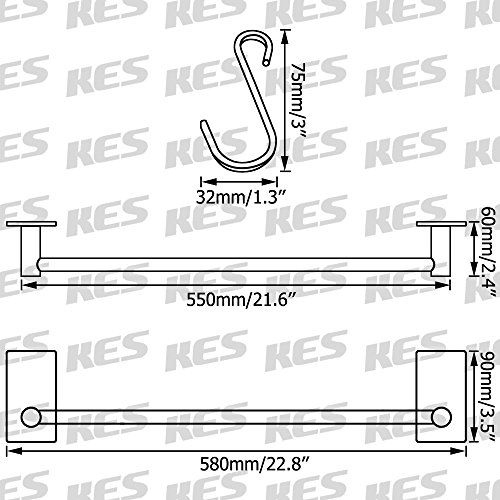 KES 3M Self Adhesive 21.7-Inch Towel Bar Wall Mount, Brushed SUS 304 Stainless Steel, A7001S55-2