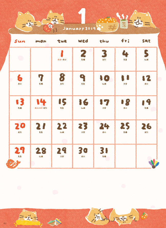 ●※お持ち帰りポリ袋付き カレンダー制作段階において、皇室関連行事にあたる日が祝日になるか未定であった ため、次年に限り該当日が下記の印字内容となっております。