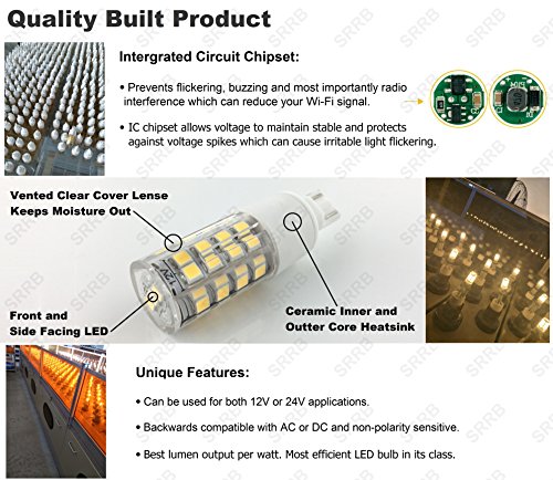 ✔LESS HEAT = Cooler Camper: NO Flickering, NO Electromagnetic Interference "static" to your radio or TV. ✔Built-in constant current IC circuit designed to withstand power fluctuations ensuring long life of the LED chips. Our bulbs are rated at 25,000 hours to ensure long life and durability. ✔1 Year hassle free warranty and 30-day money back guarantee.