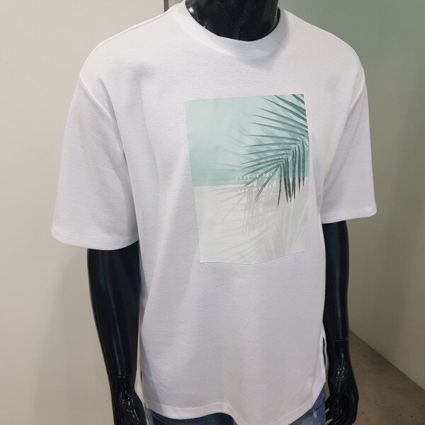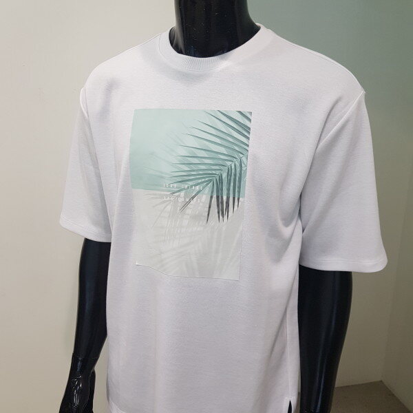 18 S/S 여름 신상.남'여 공용으로 착용가능한 야자수 그래픽(오버핏) 티셔츠 입니다. 시원한 느낌의 야자수 전사가 들어간 미니 특양면 오버핏 라운드넥 티셔츠로, 커플룩으로도 적극 추천 드립니다.