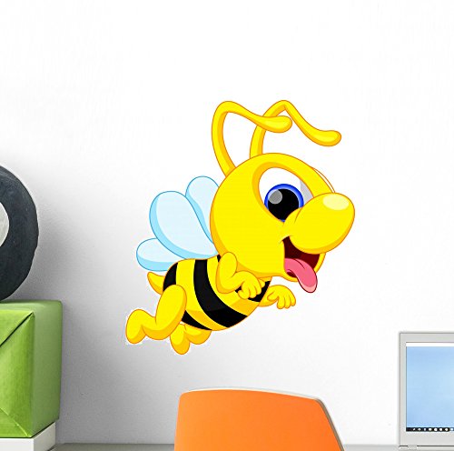Cute Bee Cartoon Wall Mural by Wallmonkeys Peel and Stick Graphic (12 in H x 11 in W) WM213966