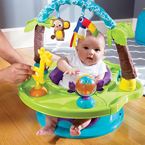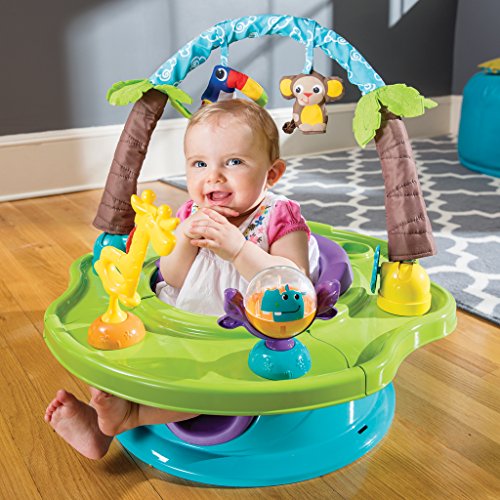 -.360 degree rotating tray with a variety of activities to keep baby engaged
