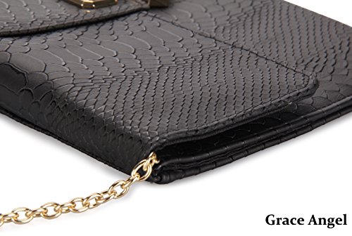 Grace Angel Women's Snake Skin Embossed Envelope Clutch Handbag Shoulder Carry Bag GA15470