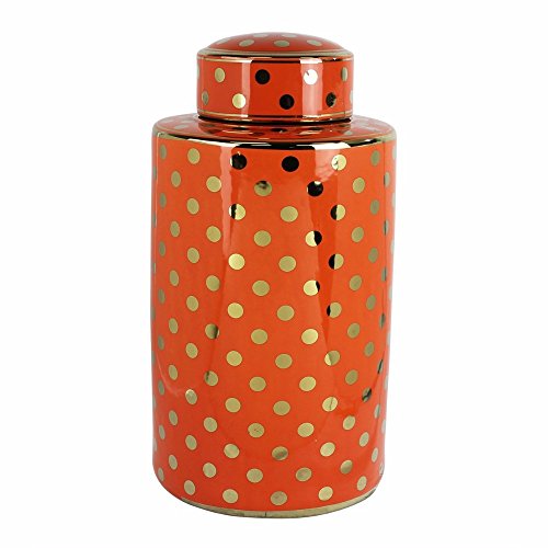 Benzara Decorative Ceramic Covered Jar with Polka Dot Motif, Orange