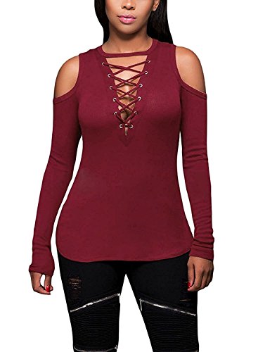 -. Title : Women's Sexy Cold Shoulder Lace Up Ribbed Blouse Tops