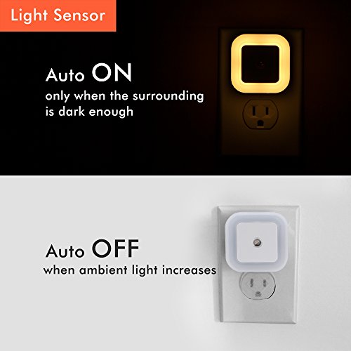 [ Auto On/Off ] -- Built-in sensitive LIGHT SENSOR, the nightlight automatically turns on at dusk and off at dawn. You don't have to worry about turning it on and off around the house in the morning and evening. The smart sensor does it for you