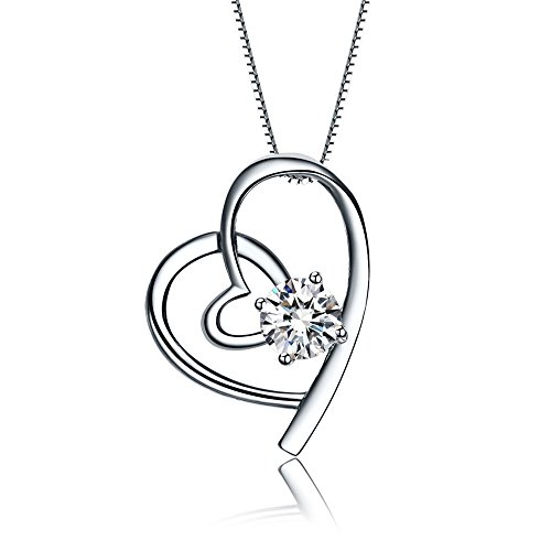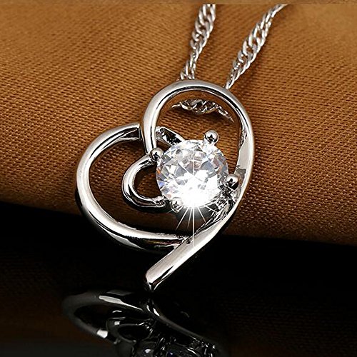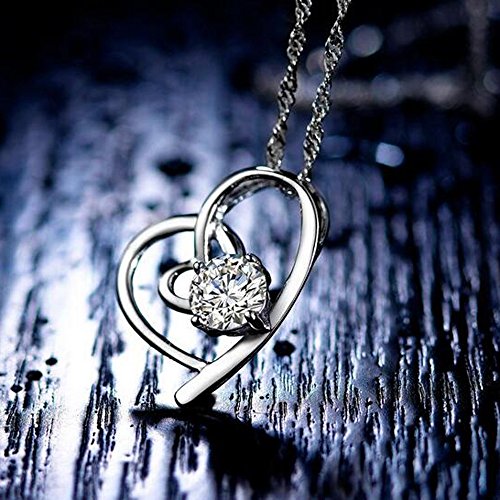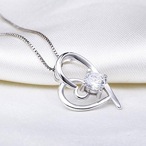 HZY Accessoires Herz Damen Halskette mit Anhanger aus 925 Sterling Silber mit Herz und Kristall Swarovski Element. Silberkette Lange: 45 cm (18)
