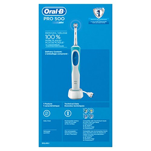ORAL-B PRO 500 POWER RECHARGEABLE ELECTRIC TOOTHBRUSH POWERED BY BRAUN