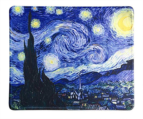 dealzEpic - Natural Rubber Mouse Pad w/ Printing of Starry Night by Vincent Van Gogh - 9.5x7.9 inches