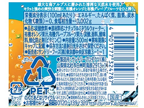 原材料:ナチュラルミネラルウォーター、有機オレンジ果汁、有機グレープフルーツ果汁/炭酸、香料、酸味料、酸化防止剤(ビタミンC)