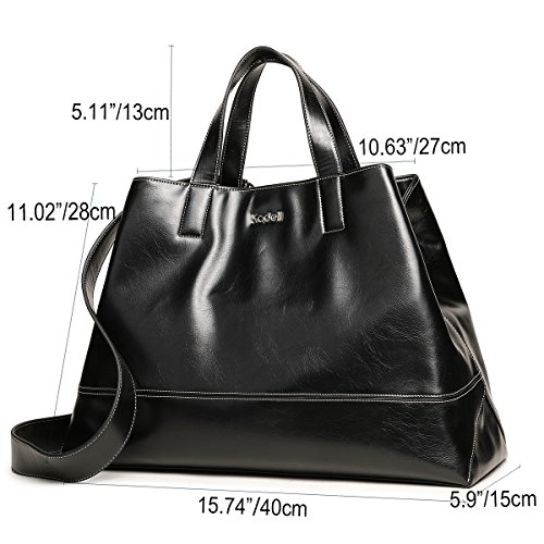 - Material: High Quality PU Leather; Closure: Top magnet closure. Dimensions: 15.74*5.9*11.02 inch; Top handle Height: 5.11 inch; Shoulder strap length: 21.25 inch.