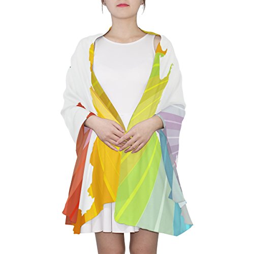 (BEATYG)/Accessories/Cold Weather Accessories/DIRECT FROM USA/Ethel Ernest Womens Silk Scarf African Map With Colorful Stripes Lightweight Shawl Soft Long Scarves
