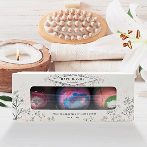 -. Feature : MORE BENEFITS: Big bath bombs mean that you'll get more of the nutrients that hydrate and soften your skin, and protect you against aging. / 3 VARIANTS TO ADDRESS DIFFERENT ISSUES: Hibiscus detoxifies and boosts blood circulation; Watermelon with super sweet fragrance to help you relax; Cotton candy is enriched with antioxidants that will leave your skin looking and feeling refreshed. / FIZZIER BATH: This bath bomb set provides more fizz, so your bath time is more fun, and the explosions are more intense. It is perfect for a luxurious bubble bath. / AROMATHERAPY: Each luxury bath bomb is scented to provide aroma therapeutic qualities, relieving stress and promoting a more relaxed sleep. / IDEAL FOR GIFTING: Each bath bomb comes individually wrapped nestled in a sturdy box for an elegant presentation which makes it a perfect bath bomb gift set for women, girls or kids.