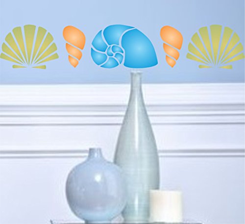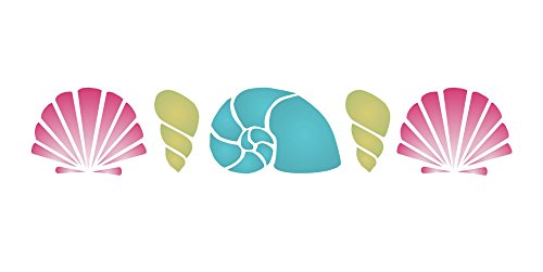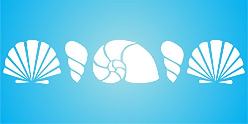 Stencils for Walls - Ocean Stencil - (size 6”w x 1.25”h) Reusable Sea Shell Nautical Seashore Reef Border Stencils for Painting - Use on Paper Projects Walls Floors Fabric Furniture Glass Wood etc.