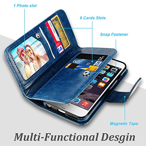 -. Feature : This Samcore Leather Wallet case is designed for iPhone 6 4.7¡± and iPhone 6S 4.7¡±, Does Not fit iPhone 6/6S PLUS 5.5¡±. Every item is shipped with strictly Quality Control; Make sure each one is in perfect condition before ship. We also provide a 1 year warranty and personal customer care! Feel free to contact us at any time with any questions you may have. / Functional Wallet Case: This wallet case is designed with 8 card slots, 1 Photo ID slot and 1 bill pocket that could be used to secure cash, cards, photo ID and keys. / Detachable Folio: Inner case and outer flip card slot case are easy to combine and remove by magnet, easy operates and offers your device full front screen protection by the detachable magnetic flip cover. Also it can be separated as a simple case to protect your phone. / 100% HAND-CRAFTED from high quality PU leather with beautiful stitching, each product looks and feels luxurious. The inner TPU slim case is also covered by leather even the edge of the TPU case. / WORKS GREAT with most/all magnetic (car) mounts, selfie sticks, screen protectors, flash photography and Apple Pay/NFC.