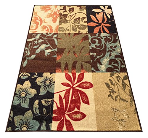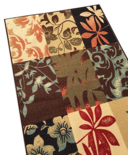 Kapaqua Rubber Back Non-Slip Italian Floral Panel Boxes Brown Multicolor Rugs and Runners - Rana Collection