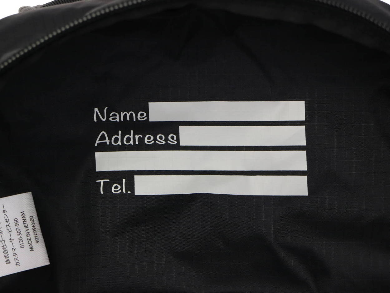 500mlのペットボトルが収納でき、他に、タオルや子供用のTシャツ程度も収納できます。内装はシンプルなデザインで、名前、住所、連絡先を記入できるアドレススペースを設けています。