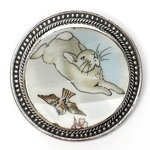 -. Title : Broken China Jewelry Beatrix Potter Peter Rabbit Flying Birds Sterling Brooch Pin Pendant