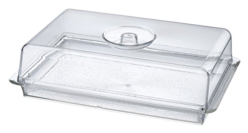 Product Description Acrylic Rectangular Tray With Lid Unbreakable Clear Acrylic, Shatterproof, Dishwasher Safe And BPA-Free SET CONTAINS: 1- Rectangular Tray 11" x 7" x 1 1/2 and 1 Dome Lid. BPA-Free, and dishwasher safe. Do not microwave. 0