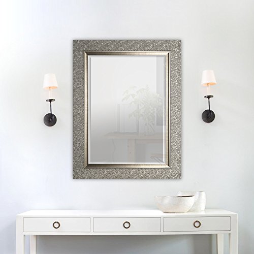 Mirrorize.ca Rectangular Beveled Hanging Wall Decorative Mirror with Mosaic Silver Frame, 27-Inch by 35-Inch