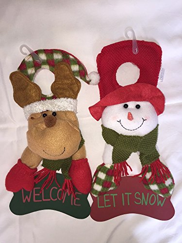 Great set of festive seasonal decorations to dress up your home or office! Use them as door hangers, wall plaques, ornaments on the tree, gift giving, other Christmas decor and more. Set of 2 adorable door hangers. One snowman and one reindeer. Snowman measures 14 inches tall by 6.5 inches wide. Reindeer measures 13 inches tall by 7 inches wide. Each is made of fabric and carries a wooden sign or plaque.