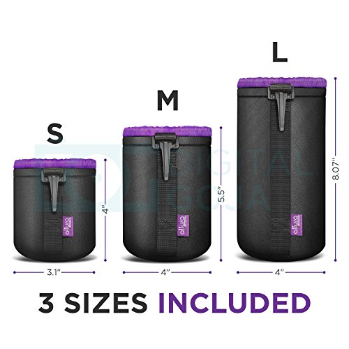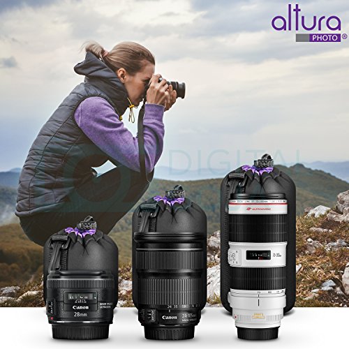 (3 Pack) Altura Photo Thick Protective Neoprene Pouch Set for DSLR Camera Lens (Canon, Nikon, Pentax, Sony, Olympus, Panasonic) - Includes: Small, Medium and Large Pouches