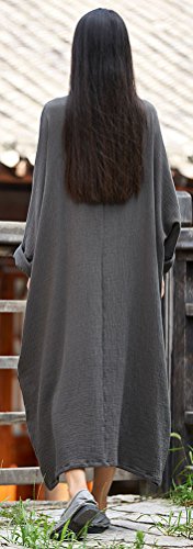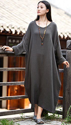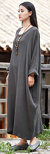 Soojun Women's Casual Cotton Linen Long Dress with Batwing Sleeve, Style2 Olive Green, One Size