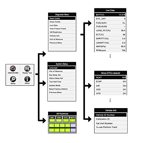 - The AM3011 comes with an integrated OBDII fault code lookup library, which will let you be able to even view freeze frame data; conduct I/M test, and retrieve vehicle information (VIN, CIN and CVN).