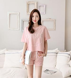 • 甘いデザイン女の子♪ 半袖&ショートパンツの上下セット!かわいいセットアップで ルームウェアにも最適です。