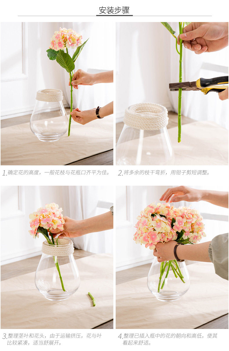 现代简约创意家居水培玻璃透明花瓶花器摆件假花仿真装饰个性大号