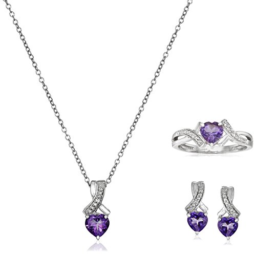 -. Title : Sterling Silver Heart Shape Amethyst and Round Created White Sapphire 3 Piece Jewelry Set