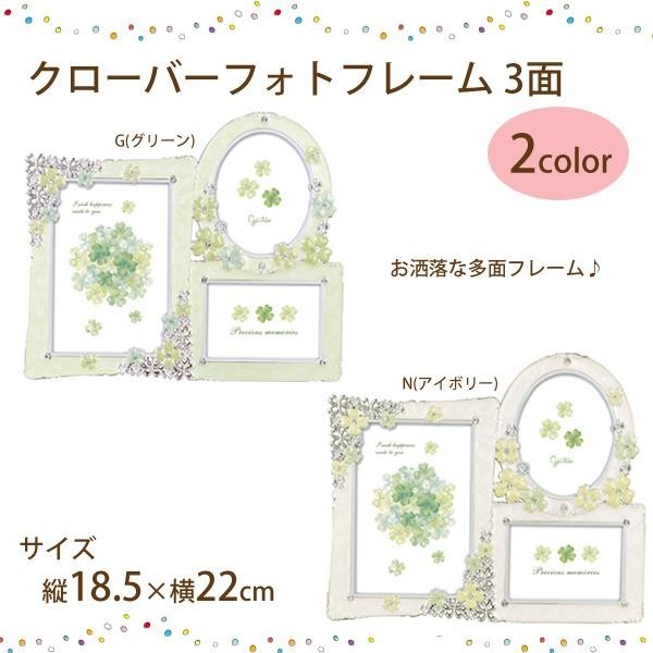 3種の写真を飾ることが出来ます。お洒落な多面フレームにクローバーが華を添えます。