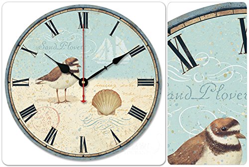 - Title : iCasso 12" Rustic Country House Sea Theme Bird Shell Sail Boat Wooden Wall Clock Wooden Wall Art Decor
