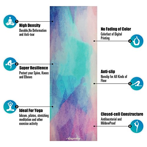 - EXCLUSIVELY UNIQUE PATTERN - Designed by Aimerday and advanced printing technology made mats colorful and do not worry about fading. The printed mats bring you physical and mental pleasure when doing yoga. Lots of Aimerday mats users have got much compliments from their friends.
