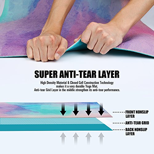 Aimerday Premium Printed Yoga Mat 72-Inch Long 1/4" Extra Thick High Density Eco-friendly Non Slip Exercise Mats for Pilates, Fitness, Hot Yoga with Carrying Strap and Bag