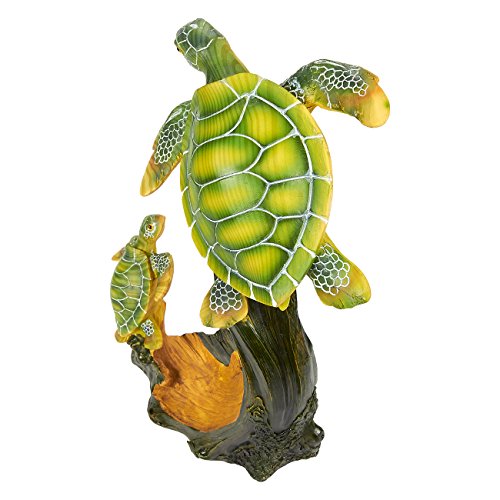 Turtle Sculpture - Garden Statue Decor, Cute Resin 2 Turtles Swimming Figurine for Garden, Yard, Interior Decoration, Green - 7 x 9 x 3 Inches