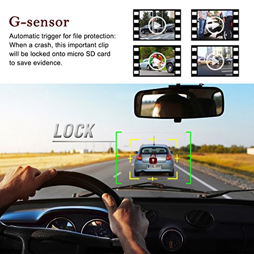 - 【Essential Functions】 G-sensor, parking monitoring, loop recording, Auto power off, screen saver. With Loop recording, so you don't have to manually delete files when memory card gets full. G-sensor locks the important clips in case of it is overwrited. With auto park detect and crash detect, dashcam gives real piece of mind in the event of a crash.