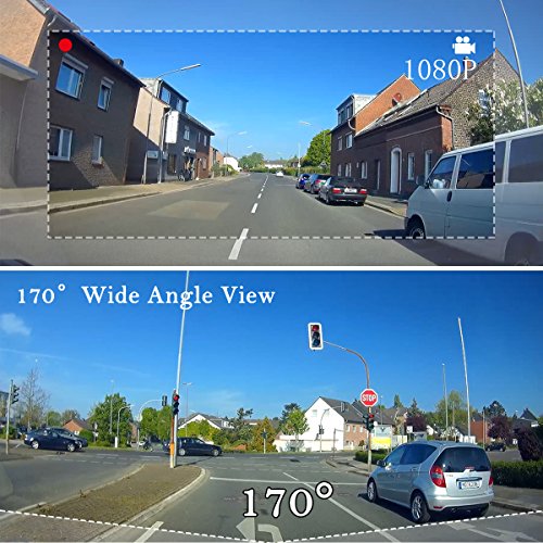 - 【High Definition Video and Audio】Full HD 1080P Recording at a Smooth 30fps with H.264 Chipset and Low illumination Night Vision Sony Exmor sensor, 170° Wide Angle, which helps capturing the road signs during day and night when driving and provides superb picture/video.