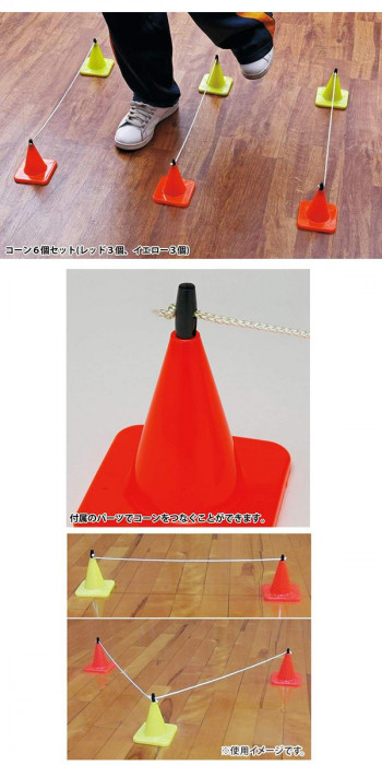 | 組み合わせ自在!!アレンジ次第で多彩なトレーニングが可能。コーンの上部にステップコードを張れるので、ラダー風のトレーニングやジャンプトレーニングにも使用できます。 |