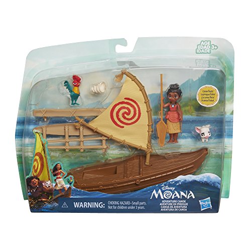 Moana of Oceania, a vibrant, tenacious, and compassionate 16-year-old sets sail on an unimaginable adventure to save the people of Motonui, relying on her swift canoe to help her through her seafaring voyage. This Adventure Canoe set features a boat that floats, Moana of Oceania, Pua, and Hei Hei figures and accessories so kids can reenact story moments and create new ones, with some of their favorite characters from Disney's Moana. The Moana of Oceania doll comes with a removable necklace. Copyright Disney Hasbro and all related terms are trademarks of Hasbro.Feature