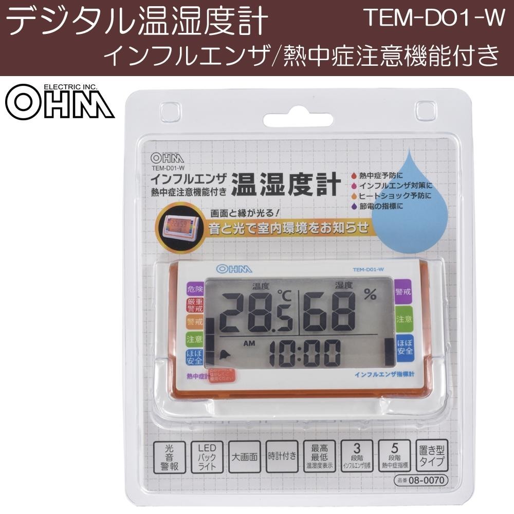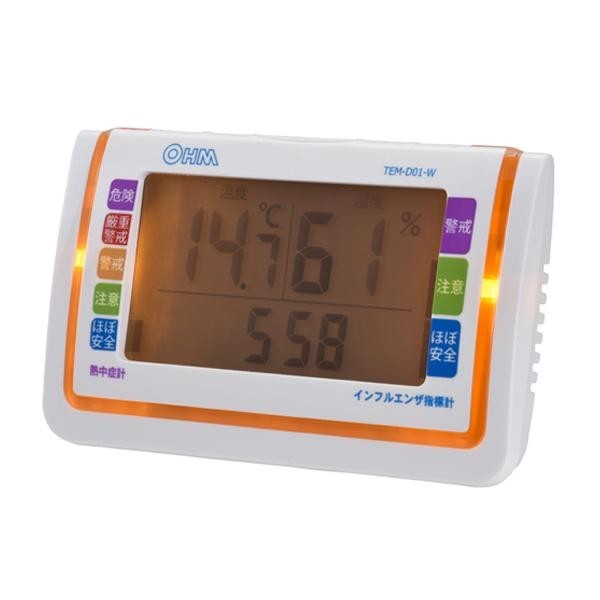 | 温度と湿度を計測し、室内環境を音とLEDライトでお知らせします。熱中症、インフルエンザ注意機能で日々の体調管理や、空調設定の指標としても便利に使えます♪暗い場所でも確認できるLEDバックライト付き!! |