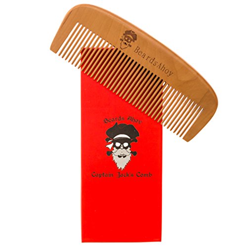 Captain Jack's Comb - Natural Pear Wood Men's Beard Comb and Pocket Comb for Beard and Mustache - Eliminates tangle, frizz, and static -By Beards Ahoy