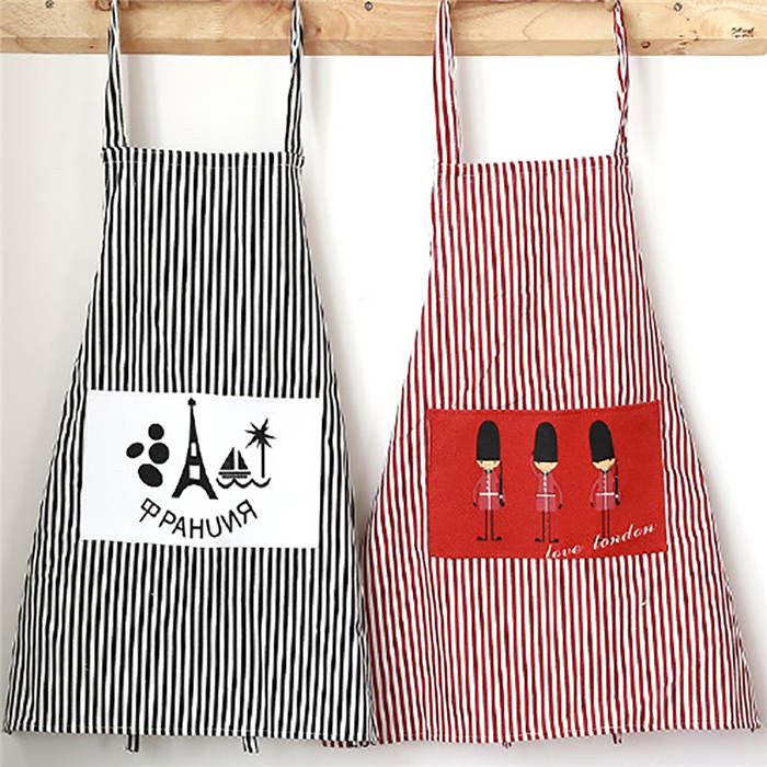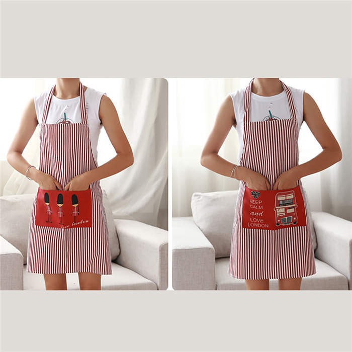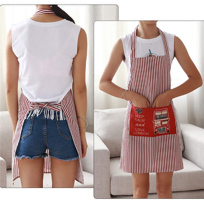 Features: Stripe, Cooking Apron, Adjustable, Front Pocket, Eiffel Tower/Soldiers/Bus Pattern