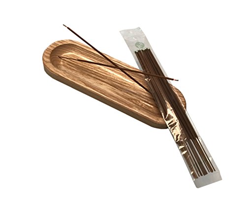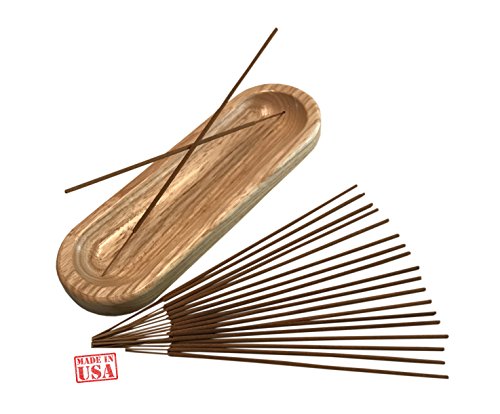 SENSARI PECAN WOOD INCENSE BURNER GIFT SET - Catches ALL the Ashes, - American Hand-Made Ash Catcher Holds 2 Sticks. 20 Incense Sticks Included - NEW